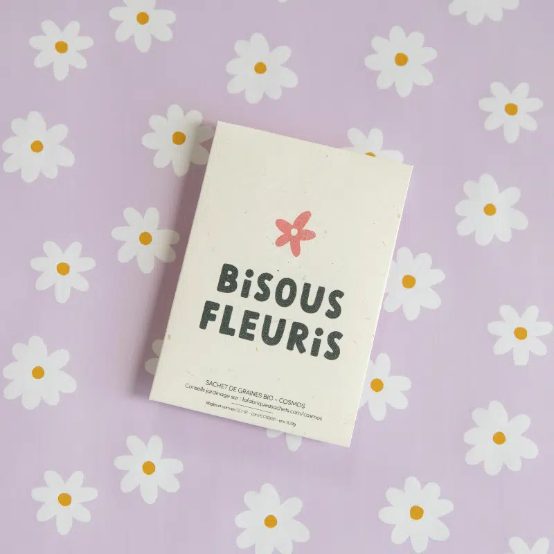 Offrez un cadeau unique avec le Sachet de Graines ‘Bisous Fleuris’ (Cosmos) de La Fabrique à Sachets. Eco-responsable, made in France, parfait pour toute occasion. Exprimez amour et gratitude naturellement.