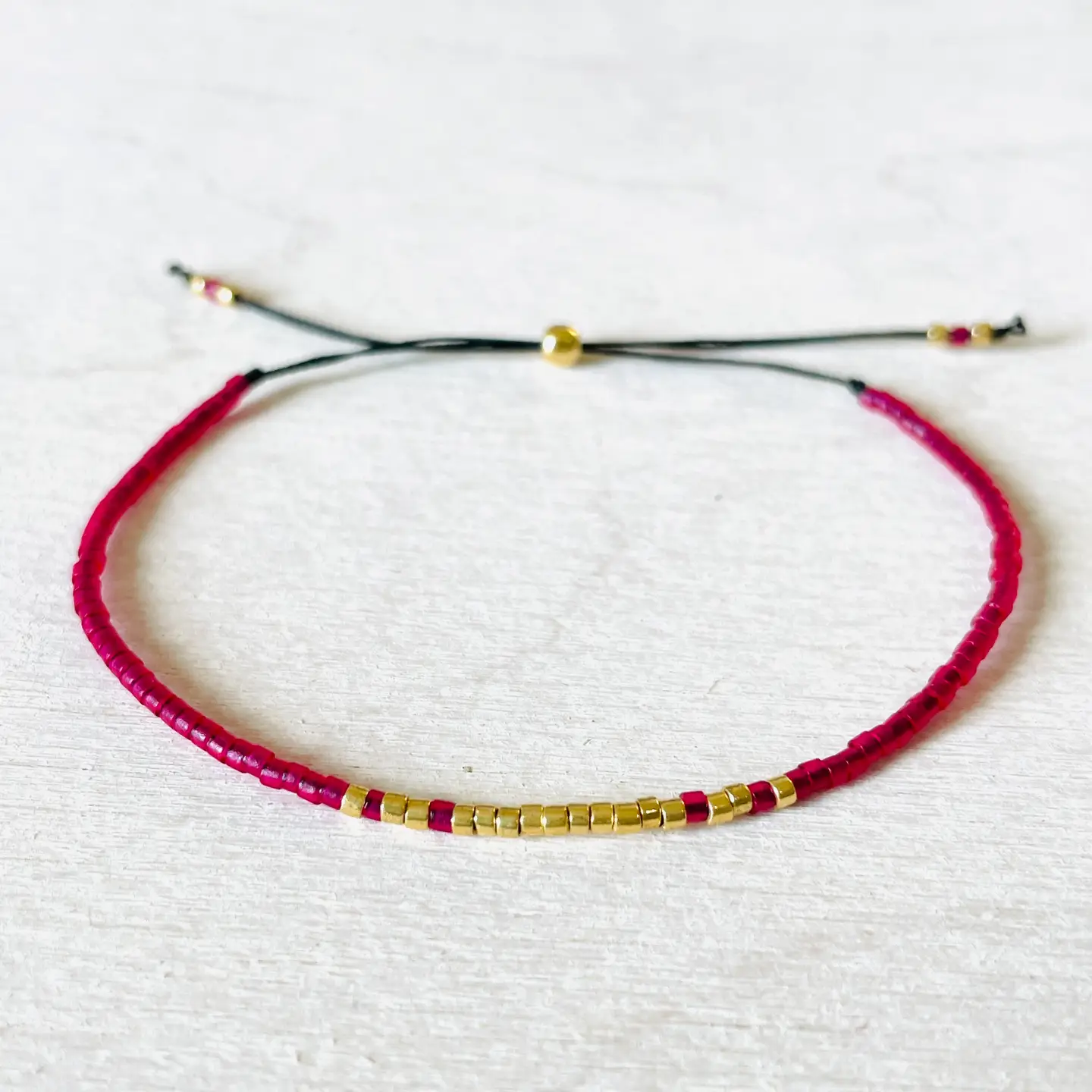 On te présente le bracelet framboise or. Il mélange une teinte framboise intense et des détails dorés pour un rendu simple, chic et facile à porter.