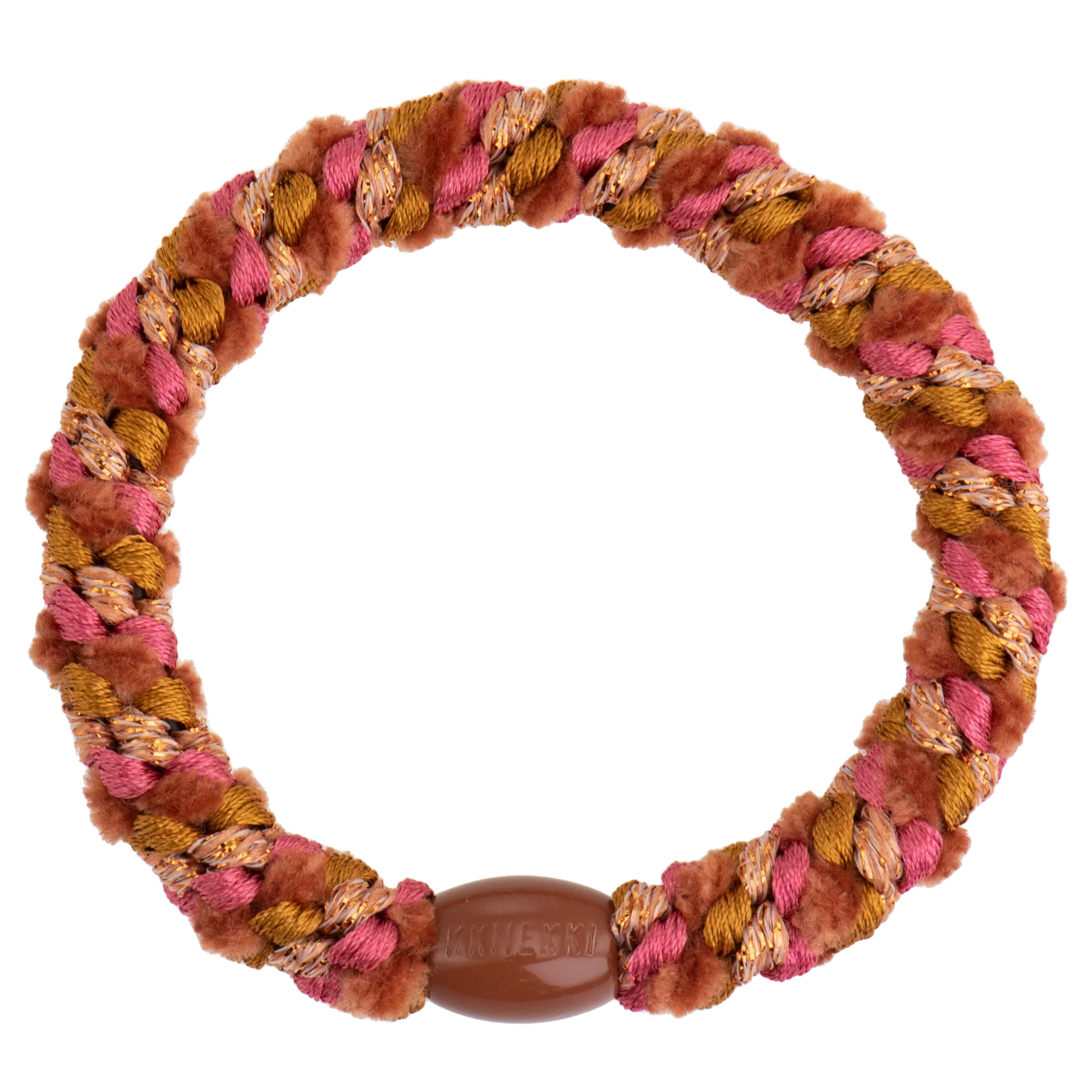 L’élastique Teracotta Framboise Pailleté de Kknekki est un accessoire chic et pratique. Avec sa couleur vive et ses paillettes subtiles, il garantit confort et maintien tout au long de la journée.