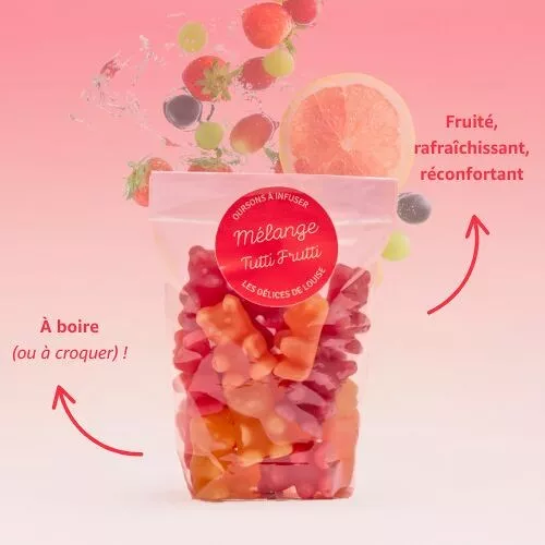 Des idées pour déguster vos oursons fruités Vous pouvez utiliser ces oursons à infuser tutti de mille façons différentes selon vos envies de saison. Par exemple, ils sont idéaux pour créer une boisson originale lors d’un goûter d’anniversaire. En outre, ils rehaussent un simple verre d’eau chaude en un clin d’œil avec beaucoup de fantaisie.