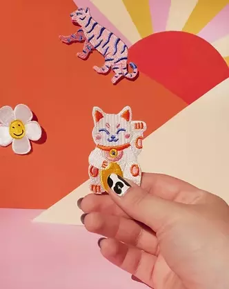 Portez chance à vos tenues avec le Patch Lucky Cat, un accessoire à l