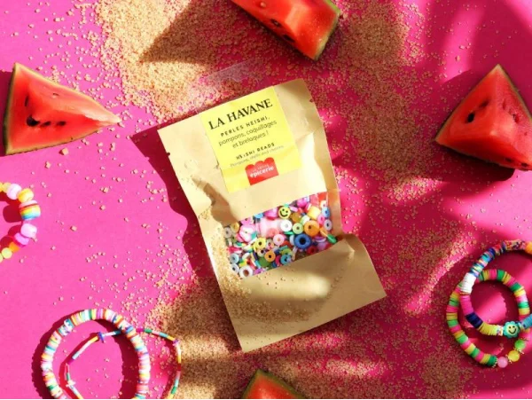 Découvrez le mélange de perles heishi et de breloques, baptisé La Havane. Avec le Pack Perles Heishi la Havane, laissez-vous inspirer pour créer des bijoux fantaisie uniques en associant ces perles heishi, pompons et breloques, idéales pour égayer vos tenues lors des journées estivales ensoleillées !