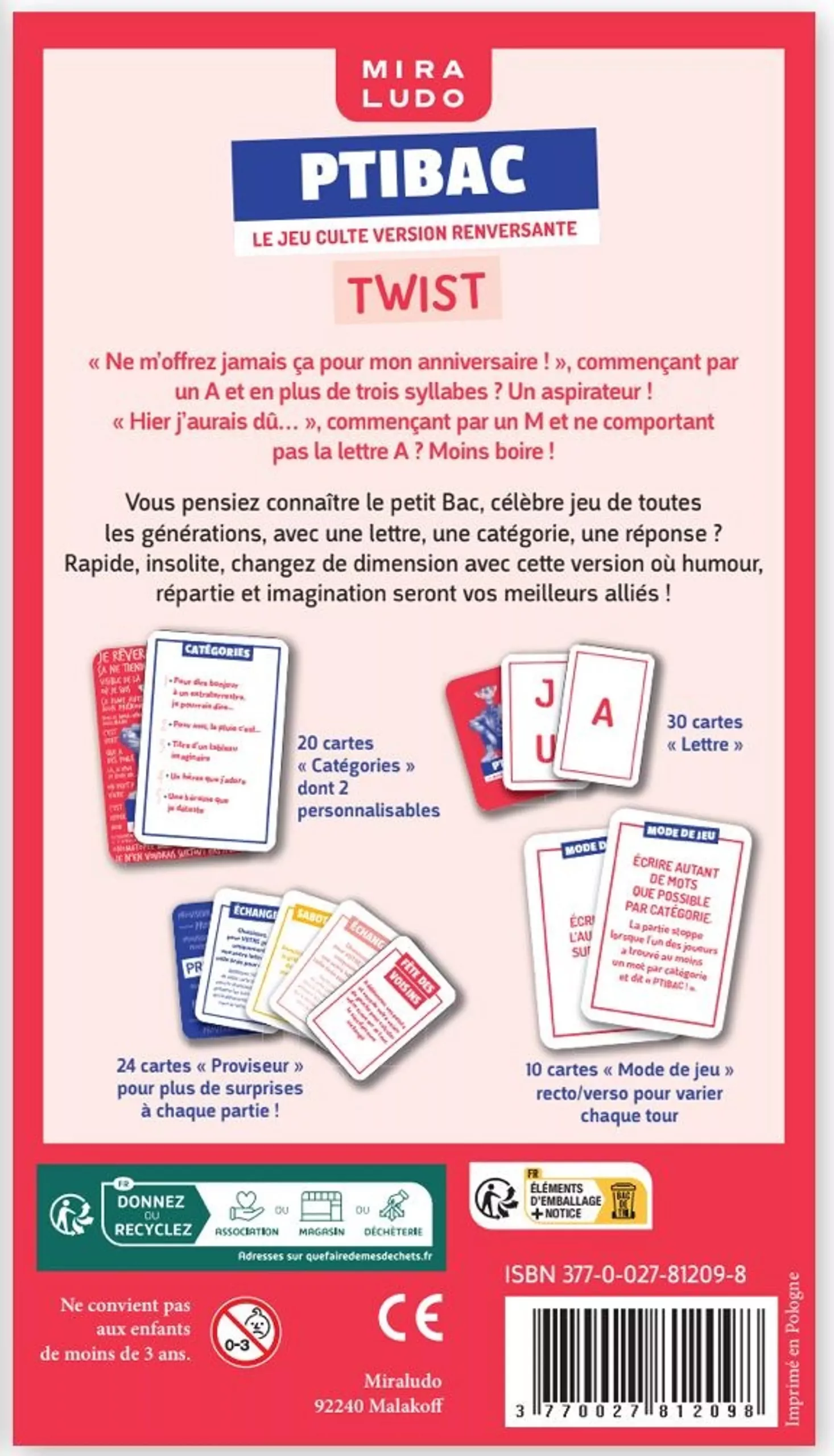 Redécouvrez le plaisir de jouer en famille avec Ptitbac Twist ! Cette version décalée du célèbre jeu vous propose des thèmes originaux et surprenants pour des parties toujours plus drôles.