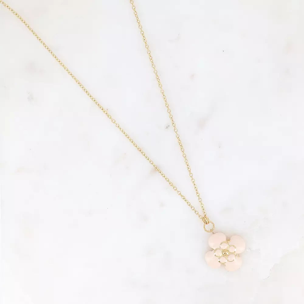 Un collier sautoir délicat et féminin, orné d’une grande fleur en émail. À porter comme un talisman fleuri au quotidien ✨